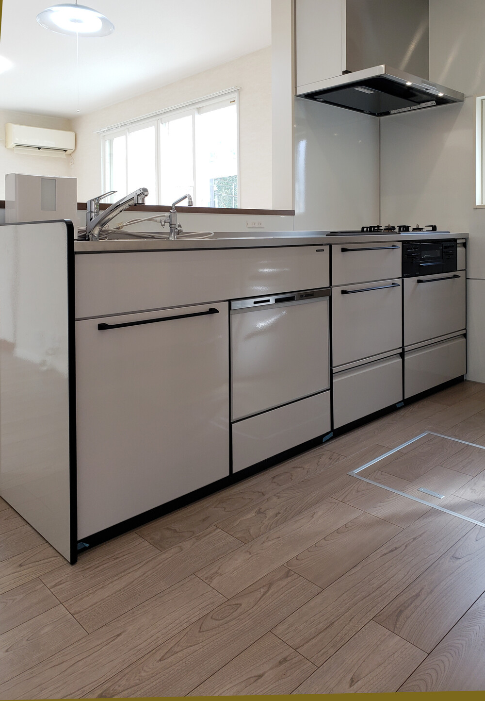 キッチンも大容量の引き出し式にしたので片付けやすくなり、キッチンをスッキリさせることができました。もうカーテンがなくても大丈夫です。また、身長に合わない低いキッチンから今回10センチ高くして、丁度良い使い心地になったため、腰痛もなくなりました。