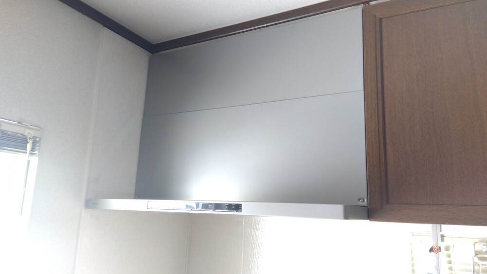 長年使用しているレンジフードが使用時に大きな音が出るようになったため、清掃性の良いレンジフードに交換。