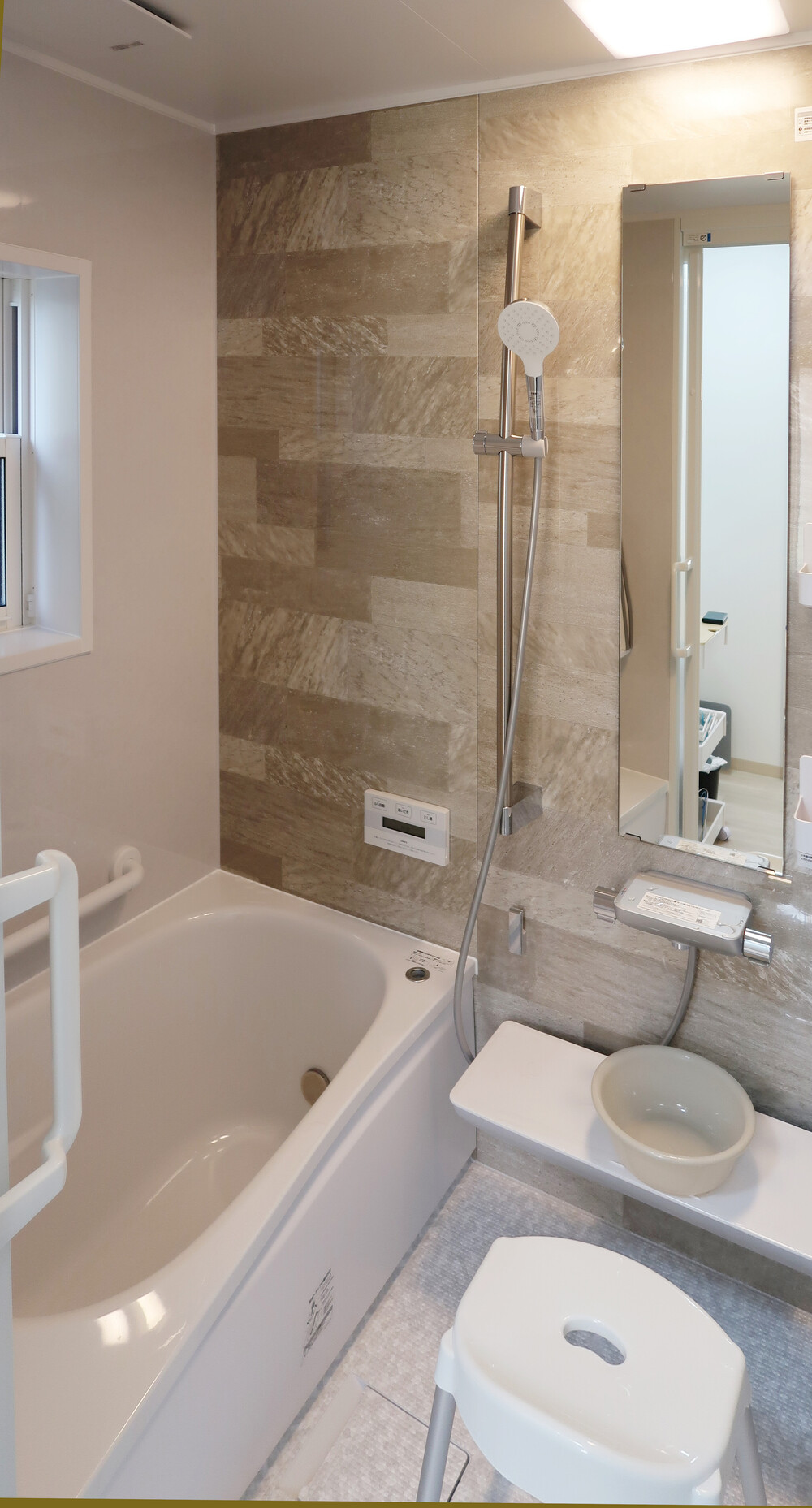また、窓のサイズを見直すことで開口部からの熱損失を抑制し、断熱性の高い浴室空間となっています。