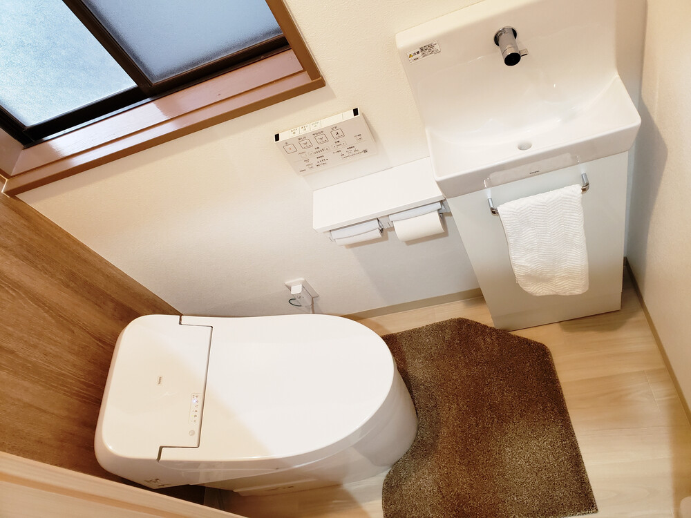タンクの形状により奥まで手が届かず、清掃性に課題がありました。そこで、凹凸の少ない形状の TOTO「GG1」を採用し、タンクレスのようなすっきりとした意匠へ変更。便器奥まで手が届くので、日常のお掃除もしやすくなりました。